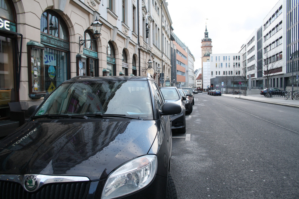 Thema war das schon zum diesjährigen PARK(ing) Day am 18. September. Da hat auch der StuRa der Uni Leipzig auf der Universitätsstraße eine Aktion gestartet. So nebenbei wurde bei einer Fahrzeugzählung auch noch festgestellt, dass die Universitätsstraße von doppelt so vielen Fahrradfahrer_innen wie Autofahrer_innen genutzt wird. Durchschnittlich fuhren pro Stunde 104 Autos durch die Straße. Eigentlich schwer vorstellbar, denn eigentlich ist die Universitätsstraße eine Sackgasse. Über die Grimmaische Straße dürfen eigentlich nur Lieferfahrzeuge weiterfahren.