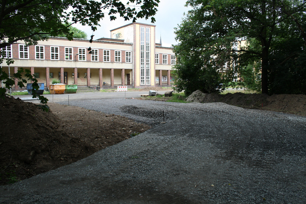 Die Sanierung und Erweiterung der Schulgebäude, die für ein neues Gymnasium dienen sollen, soll nach bisherigen Plänen im Januar 2018 beginnen. Dann ist auch die Brücke über die Kleine Luppe fertig und die Baufahrzeuge können von der Karl-Heine-Straße die Baustelle anfahren.