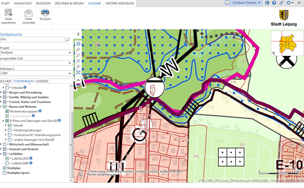 Also haben wir auch noch einmal in den digitalen Leipzig-Stadtplan geschaut. Im Screenshot aus dem Stadtplan der Stadt ist die SPA-Grenze fett in Violett eingemalt, die FFH-Grenze in Bordeaux (siehe oben). Beide liegen nördlich der Alten Luppe. Da wir aber lauter ungläubige Thomasse sind, haben wir auch noch beim Umweltministerium des Landes Sachsen in die digitale Karte mit den FFH-Gebieten geschaut. Auch dort ist die Grenze des Schutzgebietes etliche Meter nördlich der Alten Luppe eingemahlt. Die Alte Luppe gehört also nicht zum FFH-Gebiet. Was bestimmt ein eigenes Thema ist. Warum ist ein typischer alter Flussarm in der Nordwestaue nicht Teil des Schutzgebietes Leipziger Auensystem?