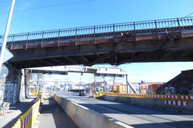 Die eingleisige Strecke wird für den Güterverkehr genutzt, betont die DB. Die Stahlbetonrahmen für die beiden Brücken werden neben der Gleistrasse vorgefertigt und mit Querverschub eingeschoben. Die Brücke an der Dieskaustraße wird denkmalschutzgerecht erneuert. Im Anschluss erfolgt die Anpassung der Straßenanlagen einschließlich der Gehwege.