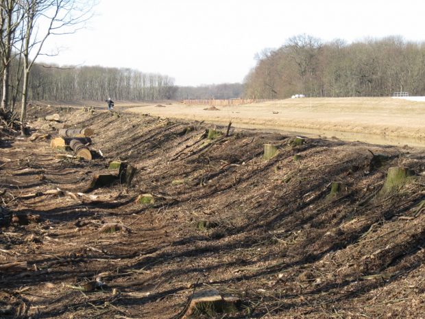 Noch heute kann man auf den Deichen im Leipziger Auwald die Lücken im Wald und die schweren Schäden am Landschaftsbild deutlich erkennen. Dort, wo sich die Hartholzaue entwickelte, ziehen sich nun kilometerlang mit Geotextil ausgelegte Schneisen, sogenannte Deichverteidigungswege, hin.