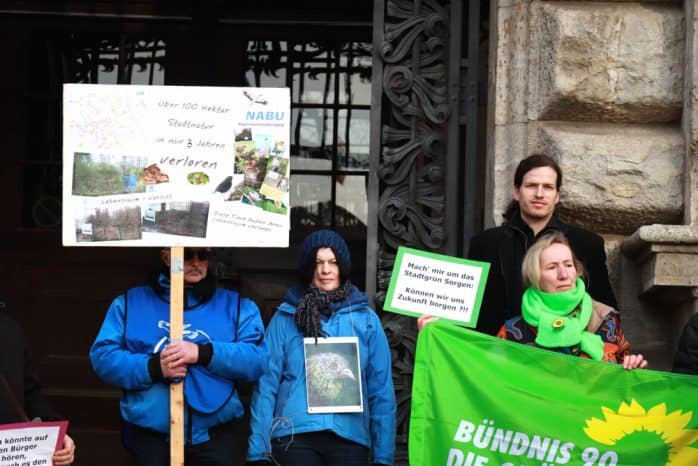 Demonstration des NABU am 19. Februar vor dem Neuen Rathaus. Fotos: Marco Arenas