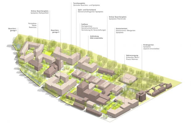 Wichtig war, dass die Freiräume in dem Areal besonders sorgfältig geplant werden und ökologische Aspekte, wie etwa der Umgang mit Regenwasser, eine tragende Rolle spielen. Zudem sollte ein möglichst breites Spektrum unterschiedlicher, auch gemeinschaftlicher Wohnformen bedacht werden. Ein nachhaltiges Mobilitätskonzept und der sparsame Umgang mit Grund und Boden waren weitere Anforderungen. Die Arbeitsgemeinschaft Schulz und Schulz Architekten / Bayer Uhrig Architekten /Franz Reschke Landschaftsarchitektur überzeugte die Jury schließlich unter anderem mit der Inszenierung der Bestandsgebäude. So soll etwa das denkmalgeschützte Turmhaus im Sinne historischer Planungen baulich erweitert und die eingeschossigen ehemaligen Abfüllhallen in Teilen aufgestockt werden.