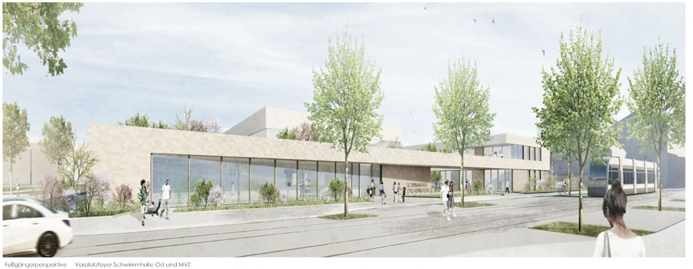 „Der Wettbewerb hat zu guten Lösungen und vielversprechender architektonischer Qualität geführt, wir können mit den Entwürfen der Preisträger sehr zufrieden sein“, betont die Bürgermeisterin und Beigeordnete für Stadtentwicklung und Bau, Dorothee Dubrau, die als Architektin selbst in der Fachjury saß. „Wenn das noch ausstehende Verhandlungsverfahren erfolgreich abgeschlossen wird, bin ich überzeugt, dass auf dem Areal eine attraktive öffentliche Sportschwimmhalle entsteht, die durch ein Medizinisches Zentrum ergänzt wird und auch Grünstrukturen am Otto-Runki-Platz berücksichtigt.“