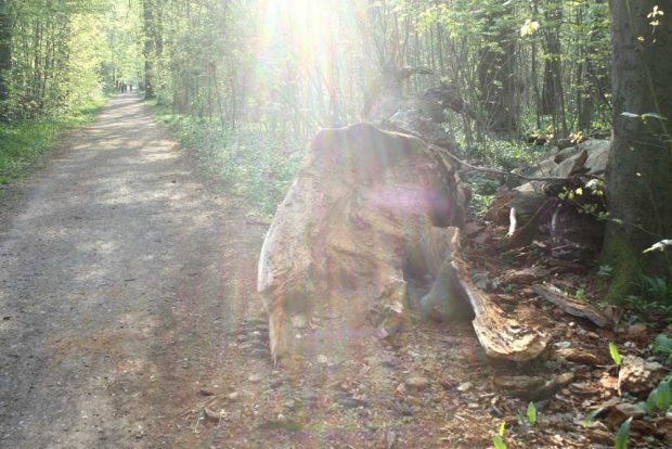 Zur Femelfläche in der Nonne: Ja – dort sind 2017 teilweise leider auch stärkere Eschen gefallen. (Der Forst argumentiert hier, dass diese jetzt wieder neue Staunässe!!! die wenig toleranten Eschen relativ bald hätte umfallen lassen.) Stimmt wahrscheinlich – wir erinnern uns: Standort war seit Jahrzehnten trocken und die alten Eschen sind an die wieder neue Nässe nicht angepasst – Nässetoleranz Esche 4 – neu gepflanzte Eichensämlinge 5 – also besser angepasst!) Viele umgestürzte alte Bäume fallen übrigens aktuell durch Schäden am Wurzelansatz auf– sehen Sie sich dies einmal genau an! Ich persönlich hätte die starken Eschen dort auch – unter Beachtung des notwendigen Lichts für die Sämlinge – wenigsten für die Restlebenszeit erhalten!