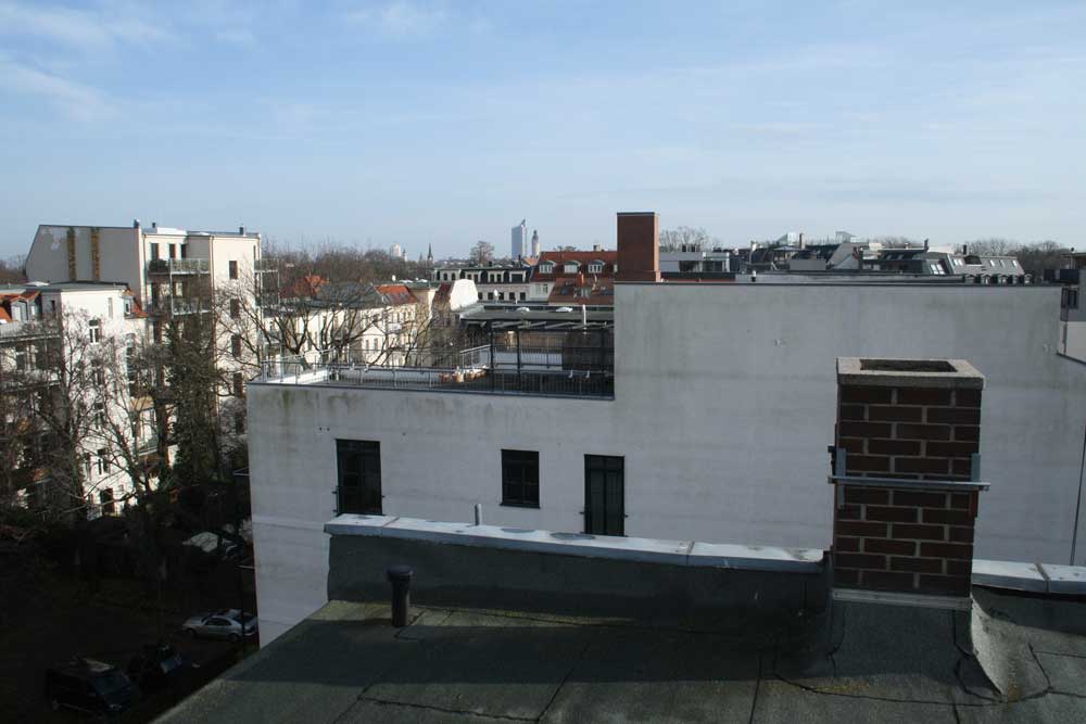 Was das bedeutet, sieht man, wenn man mit den beiden Hauseigentümern aufs Dach der Nr. 16 klettert, von wo aus man heute noch weit über die Dächer von Plagwitz schauen kann. Fast alle Häuser habe dieselbe Traufhöhe, denn als sie vor über 100 Jahren gebaut wurden, achteten Leipzigs Bauämter streng darauf, dass die Traufhöhen eingehalten wurden. Das trägt auch zum einheitlichen Straßenbild bei, das wir heute als harmonisch empfinden. Auch wenn die Erdmannstraße nicht als Bauensemble unter Schutz steht, sondern nur jedes Gründerzeithaus einzeln.