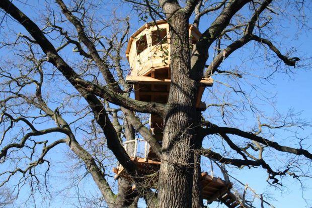„Angelehnt an historische Ruhesitze, die seinerzeit Maximilian Freiherr Speck von Sternburg im Schlosspark in den Baumkronen errichtete, wollen wir unseren Besuchern mit einer von der Auwaldstation zugänglichen Baumkronenplattform eine ganz besondere Naturerfahrung in luftiger Höhe bieten“, heißt es im Spendenflyer.