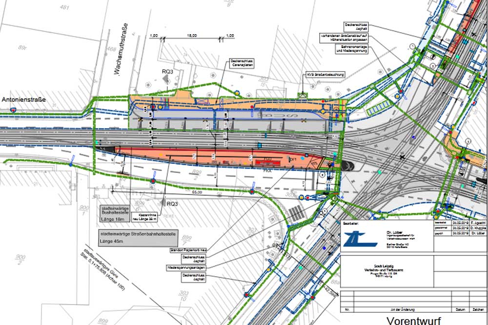 Die LVB planen den grundhaften Ausbau der Gleis-, Fahrleitungs- und Bahnstromanlagen mit einem größeren Gleismittenabstand von 2,80 Meter. Damit werden die Voraussetzungen für den Einsatz von modernen 2,40 Meter breiten Wagenzügen für den Straßenbahnbetrieb geschaffen. Neben einer Anpassung der Blindenleitsysteme werden außerdem die Haltestellen Antonienstraße Ost und West barrierefrei ausgestaltet.