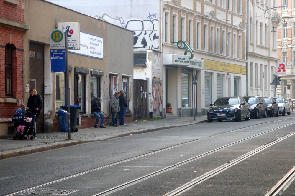 Der erste Antrag betraf die Gleise der Straßenbahn zwischen Wielandstraße und Merseburger Straße. Die waren eigentlich schon 2015 ziemlich demoliert. Damals wurde ja bekanntlich die Haltestelle vor dem Diakonissenhaus endlich barrierefrei umgebaut. Die finanzielle Unterstützung der Anlieger machte das möglich. Für die sonstigen Gleise der Straßenbahn in der Georg-Schwarz-Straße aber war kein Geld da. Und dabei ist es eine der am stärksten genutzten Straßenbahnlinien in Leipzig.