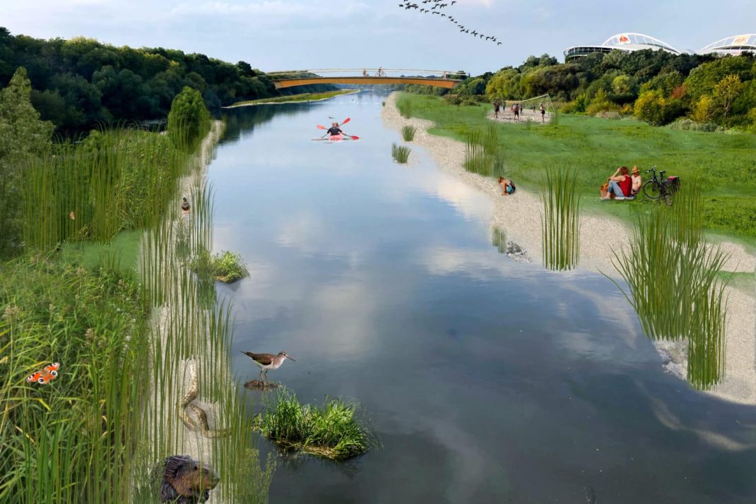 Durch eine Renaturierung könnte ein geschwungener Fluss mit Inseln, Sandbänken und Wiesen entstehen. So würde eine Flusslandschaft an dieser Stelle auch natürlicherweise aussehen. Aber auch die Leipziger/-innen würden von dieser Renaturierung profitieren. Es entstehen freie Flächen, die als Wasserspielplatz, Volleyballstrand oder Liegewiesen direkt am Wasser genutzt werden können.