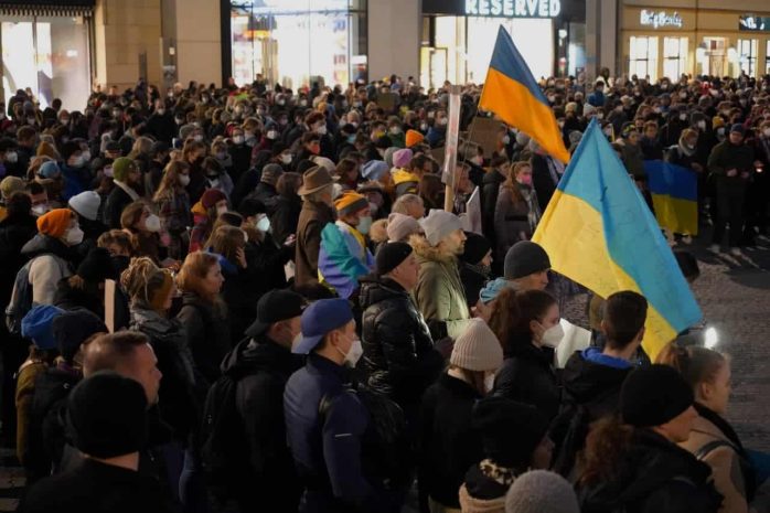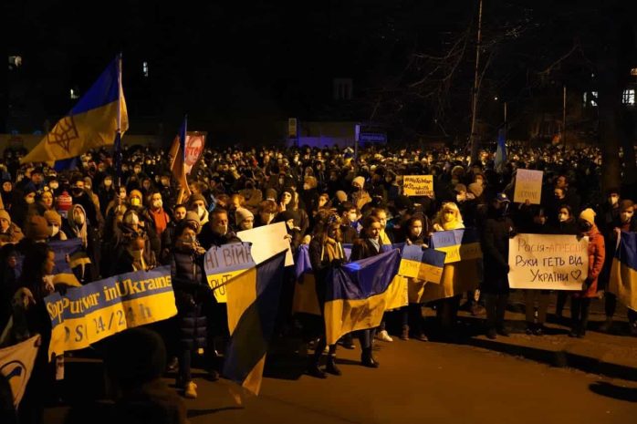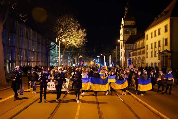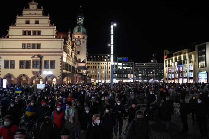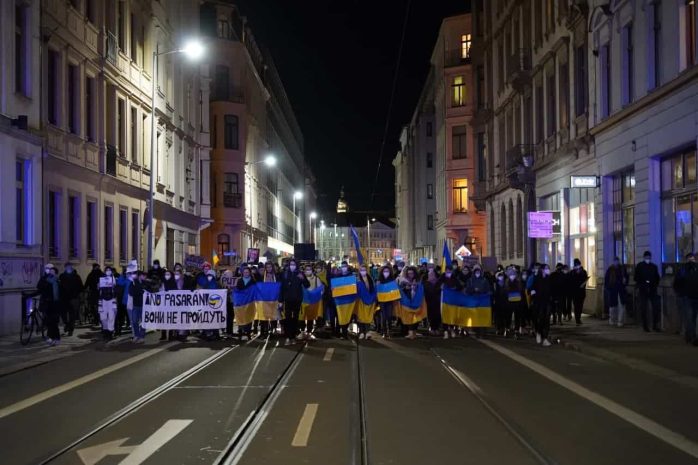 Mehrere tausend Menschen haben sich am Donnerstag, dem 24. Februar, in Leipzig an Solidaritätsaktionen mit den Menschen in der Ukraine beteiligt. Bei der Großdemonstration am Abend nahmen nach Zählung der Leipziger Zeitung (LZ) etwa 3.000 Personen teil. Sie zogen mit Bannern und Ukraine-Fahnen vom Marktplatz zum russischen Konsulat in Gohlis. Zuvor hatte es auf dem Markt seit dem Mittag eine Mahnwache gegeben.