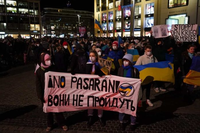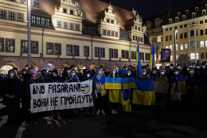 Anlass war der russische Angriff auf die Ukraine in der vergangenen Nacht. Offiziell handelt es sich dabei um eine Friedensmission, die das Ziel hat, angebliche Neonazis in der ukrainischen Regierung zu stürzen. Aus Sicht nahezu aller Expert/-innen dienen solche Begründungen allerdings nur als Vorwand, um sich russische Großmachtphantasien zu erfüllen. Wie weit die russischen Armeen gehen werden, ist unklar.In vielen Städten in Deutschland gingen Menschen heute auf die Straße – aber auch in Russland selbst, wo viele hundert deshalb verhaftet wurden. In Leipzig begann bereits um 12 Uhr eine Mahnwache auf dem Marktplatz. Höhepunkt war eine Kundgebung ab 18 Uhr mit anschließendem Aufzug.