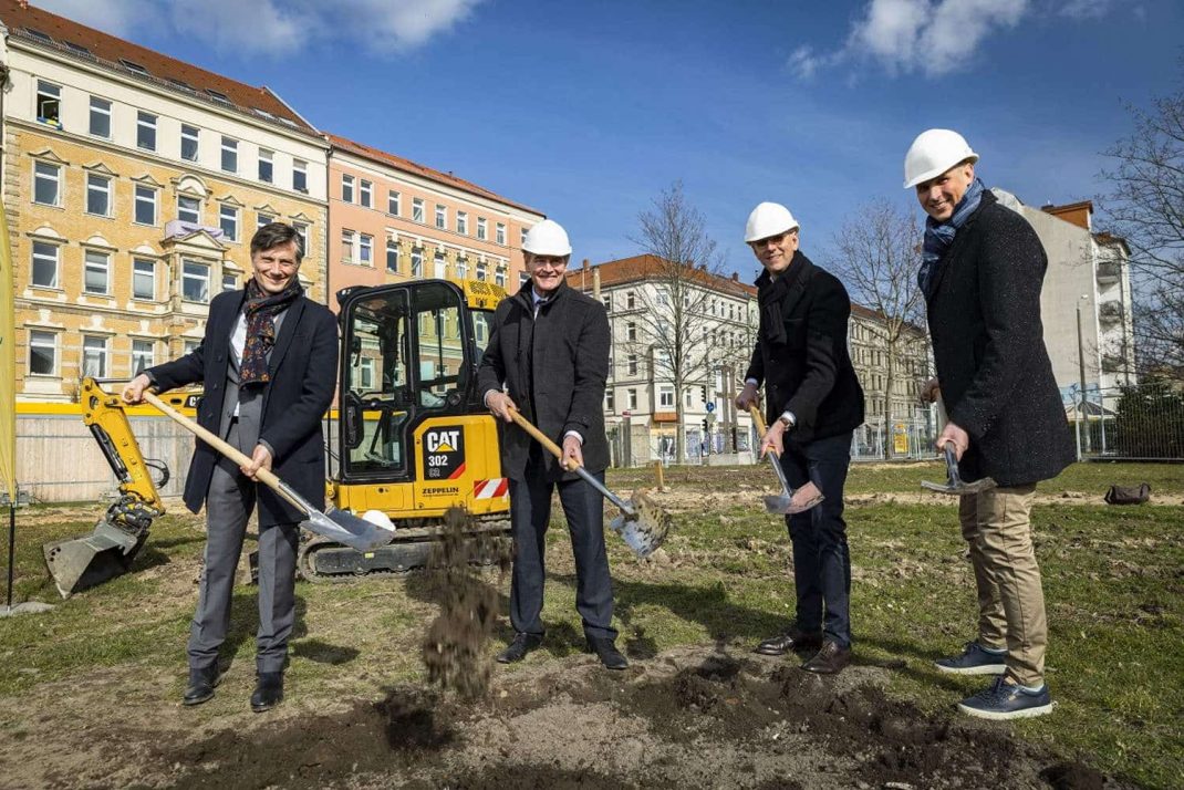 Damit ist die erste Projektphase – die Vorbereitung und Einrichtung des Baufeldes – abgeschlossen. Neben Sportbäder-Geschäftsführer Martin Gräfe und Stephan Schütz, geschäftsführender Partner der verantwortlichen Architekten von Gerkan, Marg und Partner (gmp), führten dabei auch Oberbürgermeister Burkhard Jung und Heiko Rosenthal, Bürgermeister und Beigeordneter für Umwelt, Klima, Ordnung und Sport, sowie Holger Maiwald vom Leipziger Schwimmsportverband erste Spatenstiche aus.