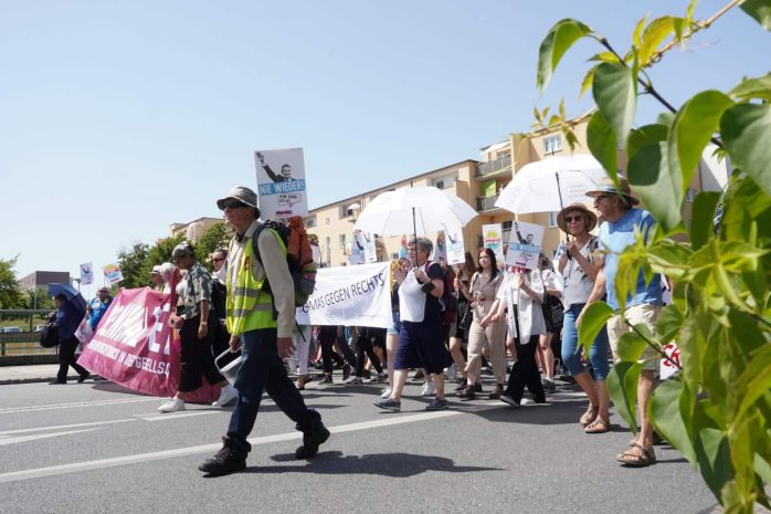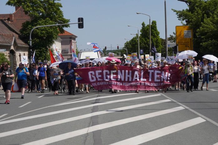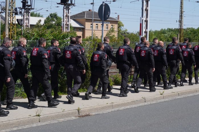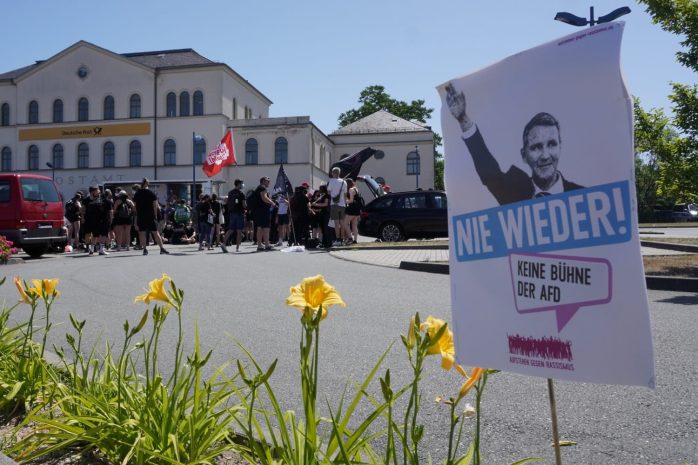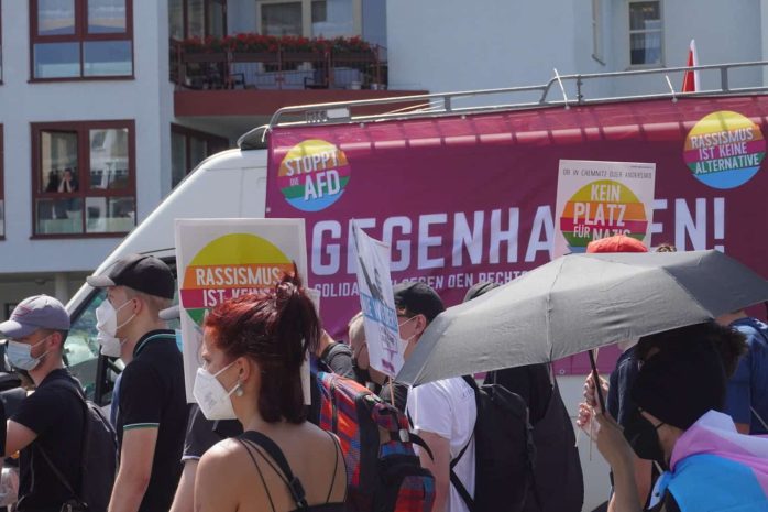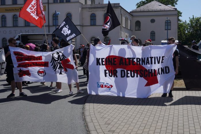 Abseits des Parteitages demonstrierten heute mehrere hundert Antifaschist/-innen in Riesa. Aus Leipzig hatten unter anderem „Leipzig nimmt Platz“ und die „Aktion Antifa Leipzig“ dazu aufgerufen. An vergangenen Protesten gegen die AfD hatten sich teilweise mehrere tausend Menschen beteiligt – allerdings wohl selten bei 35 Grad.