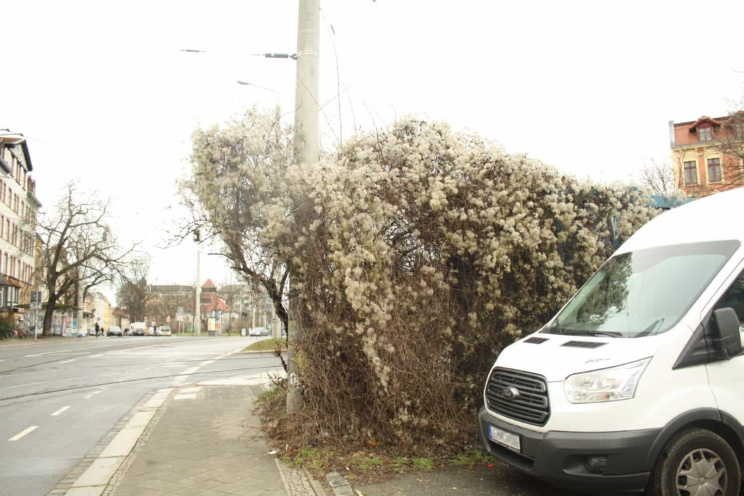 Am 7. April meldete das Amt für Stadtgrün und Gewässer: „Ab kommender Woche beginnen auf dem Areal an der Connewitzer Spitze bauvorbereitende Arbeiten zur Erweiterung der öffentlichen Grünfläche. Im Randbereich des derzeit noch wilden Parkplatzes zwischen Wolfgang-Heinze-Straße und Biedermannstraße in Connewitz werden dafür drei Robinien und ein Spitz-Ahorn gefällt, ein Teil der Hecke sowie bodendeckende Kletterpflanzen entfernt.“ Schon das alarmierte den NABU Leipzig.