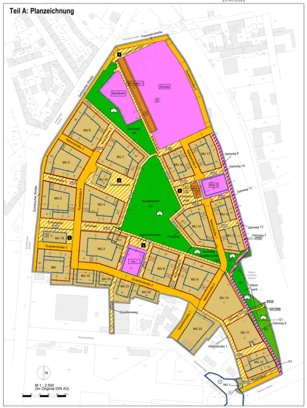 Aber die Baufelder 10 und 11 Richtung Berliner Straße muss die Stadt noch vom Geländeeigentümer erwerben. Hier hat ja der Stadtrat beschlossen, dass hier vor allem kooperative Baumodelle zur Anwendung kommen sollen. Mit dieser Vorlage bekommt die Stadt das Erstandienungsrecht.