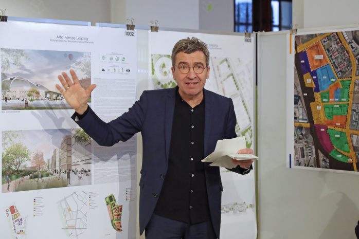 Zwischen Alter Messe und Kohlrabizirkus soll ein neues Quartier entstehen. Arbeitstitel: „Alte Messe West“. Dafür hat die Stadt jetzt einen städtebaulichen Wettbewerb veranstaltet, dessen Entwürfe nun im Stadtbüro am Burgplatz besichtigt werden können. Natürlich auch der Siegerentwurf des Berliner Büros de+ architekten gmbh sowie von BACHER Landschaftsarchitekten.