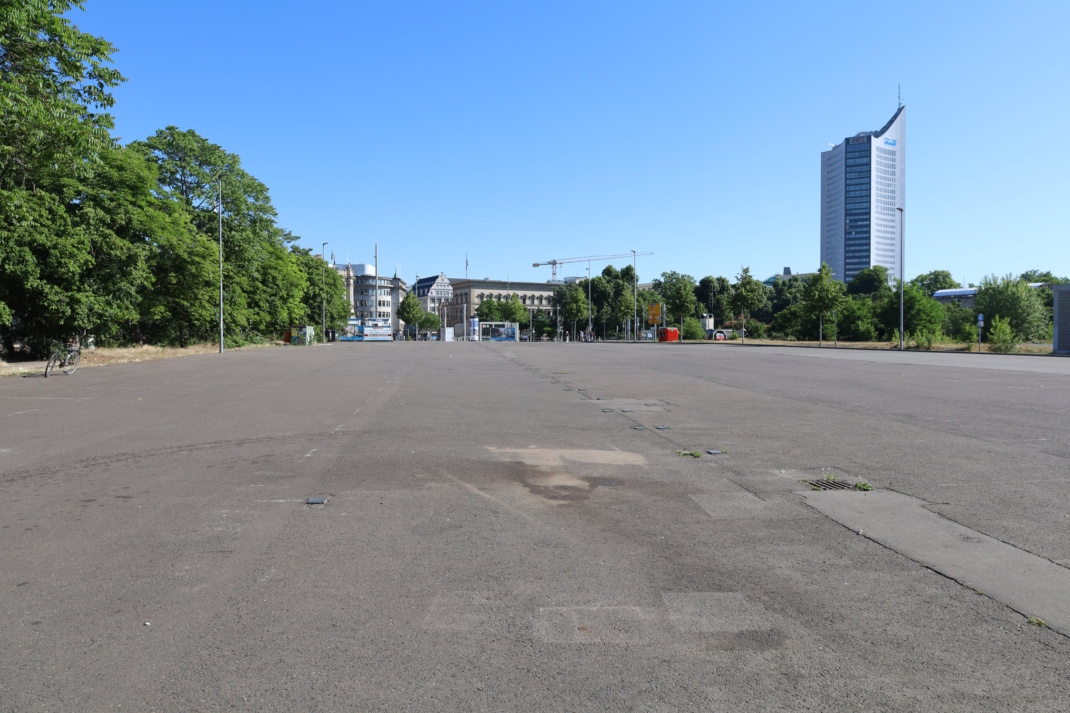 Denn da es – wie Dienberg betont – nicht möglich ist, den Baumbestand auf den geplanten Baufeldern zu erhalten, muss natürlich in nächster Nähe irgendwie ein Ausgleich geschaffen werden. Und das soll – so Dienberg – dadurch passieren, dass „große Teile der jetzt noch versiegelten Platzfläche im Westen entsiegelt werden“. Also genau dort, wo man heute noch den Asphalt des Wilhelm-Leuschner-Platzes sieht.