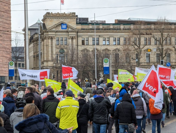 Nach einer ersten Auftaktkundgebung der Streikenden am Wilhelm-Leuschner-Platz formiert sich jetzt ein Aufzug durch die Leipziger Innenstadt. Gegen Mittag ist, nach Rückkehr der Demonstranten auf den Wilhelm-Leuschner-Platz, unter anderem ein Grußwort von Janine Wissler angekündigt, Bundesvorsitzende der Linken. Lesen Sie hier den ersten Teil unseres Livetickers.