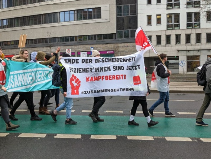 „Ich bin dafür, dass wir ganz dringend eine Attraktivität für die pädagogischen Berufe erlangen müssen“, erklärt Lydia Feindura, Mitarbeiterin des Städtischen Eigenbetriebs stationäre Jugendhilfe, ihre Motivation zum heutigen Warnstreik gegenüber der LZ.