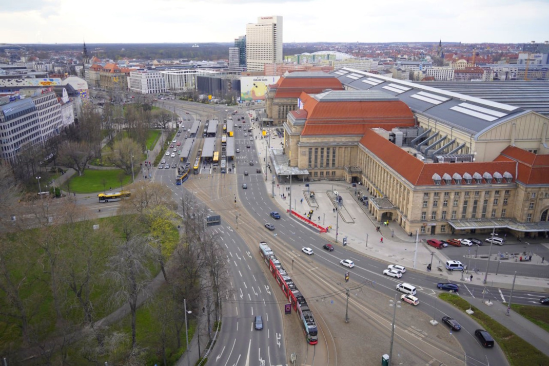 Der Blick auf LVB-Haltestelle und Hauptbahnhof-Vorfeld. Foto: Tom Richter