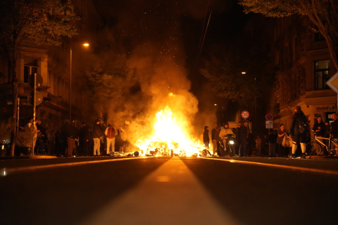 Von der Revolutionsromantik bleibt am Morgen nicht mehr viel übrig. Bagger räumen den geschmolzenen Asphalt weg. Die Polizei meldet, dass das mutmaßlich besetzte Haus leer gewesen sei. Nach Informationen der Polizei wurden durch die Brände eine Hauswand, Straßenbeläge und ein Fahrzeug beschädigt. Die Höhe des Schadens lässt sich noch nicht beziffern.