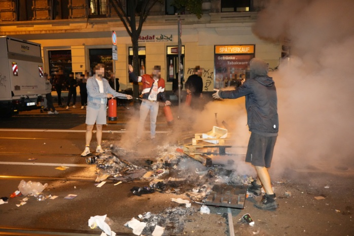 In der Folge wurden mehrere Barrikaden auf der Eisenbahnstraße und der Ludwigstraße angezündet. Teils versuchten Anwohner*innen, diese zu löschen. Ein LZ-Reporter vor Ort berichtete, dass einige jedoch auch selbst „massiv mit drauflegten“. Polizeikräfte wurden zurückgedrängt. Nach Informationen der Polizei wurden keine Personen in Zusammenhang mit den Geschehnissen verletzt.