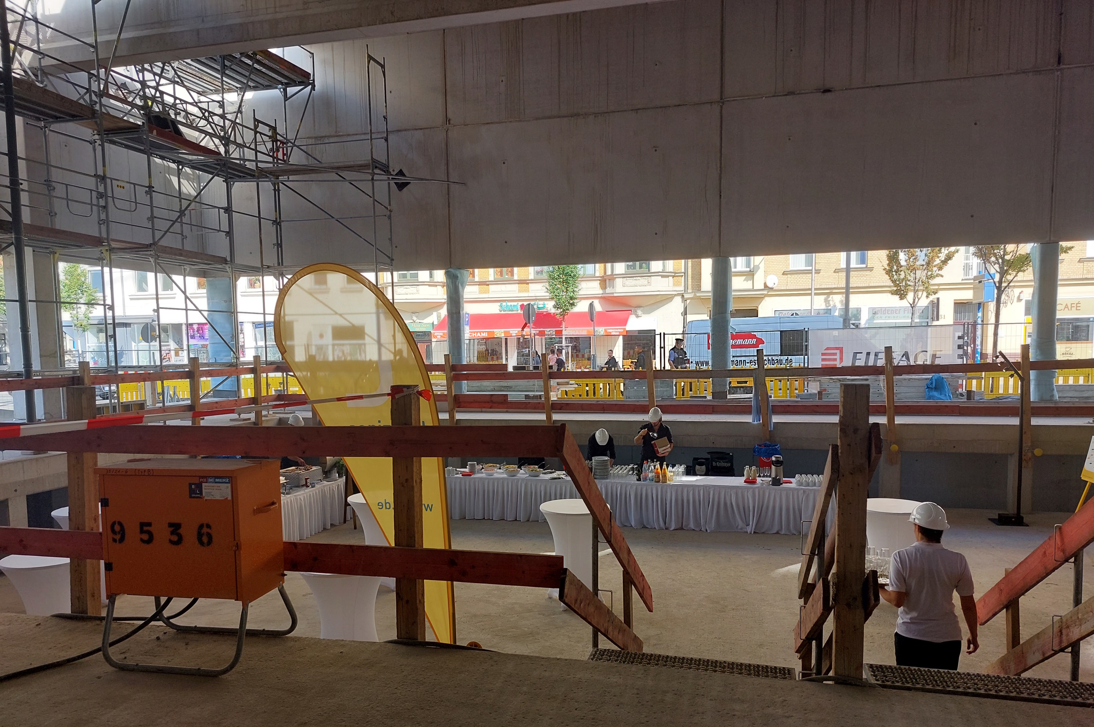 Einen Blick auf die Baustelle ermöglichten die Sportbäder am Richtfesttag auch interessierten Bürgern. Die drei angebotenen Führungen waren im Vorfeld rasch ausgebucht.