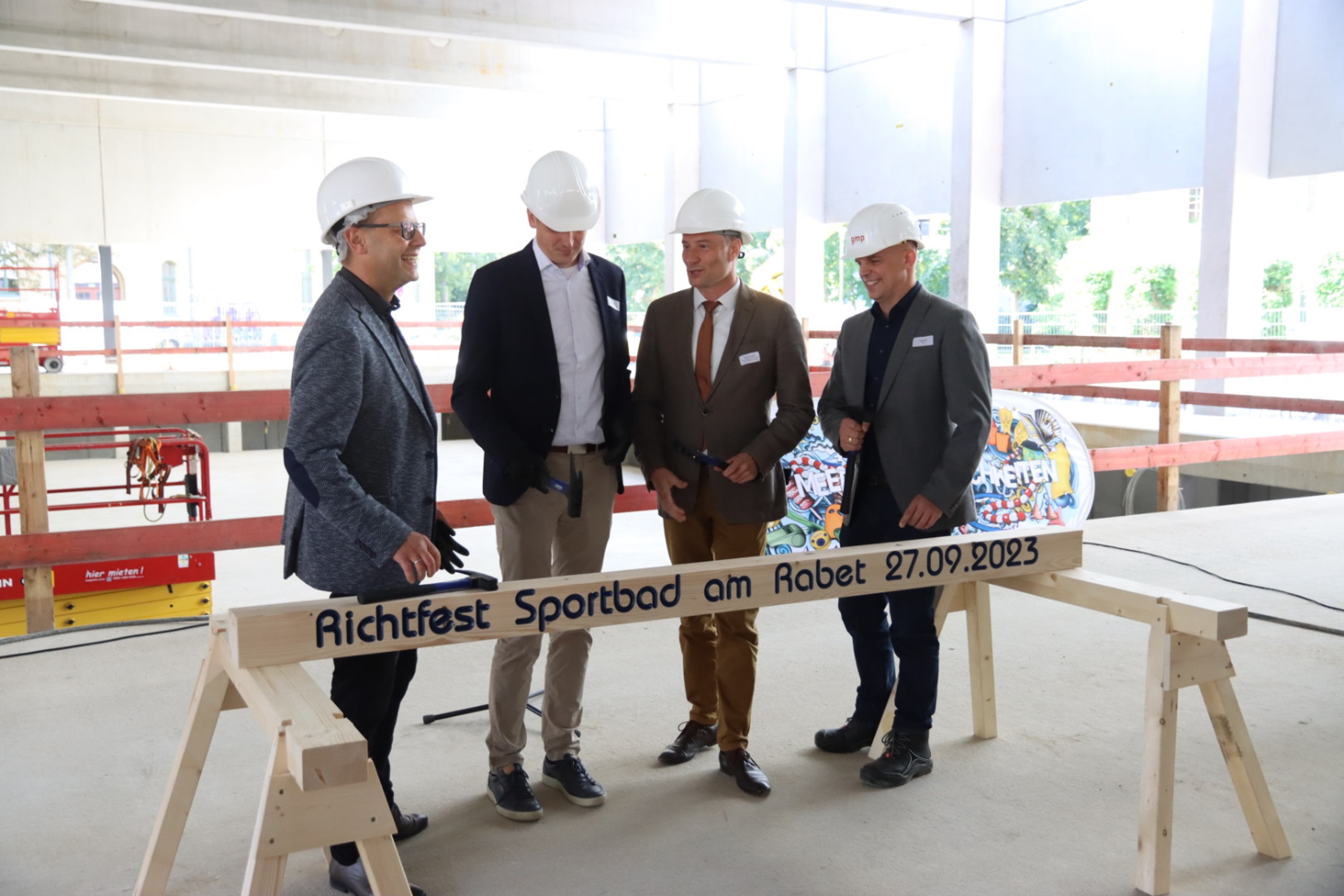 Mit einem Richtfest haben die Leipziger Sportbäder am Mittwoch, dem 27. September, mit vielen Gästen, Projektpartnern und Unterstützern den Abschluss der Dacharbeiten am Schwimmkomplex an der Eisenbahnstraße gefeiert.