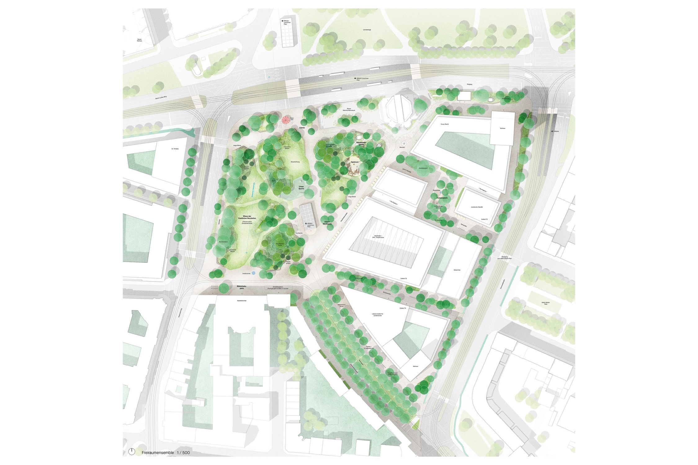 Landschaftsarchitekten ihre Vision für das innerstädtische Areal. Die Jury lobt den Entwurf unter anderem für seine selbstbewusste Antwort auf aktuelle Anforderungen zeitgemäßer öffentlicher Freiräume.