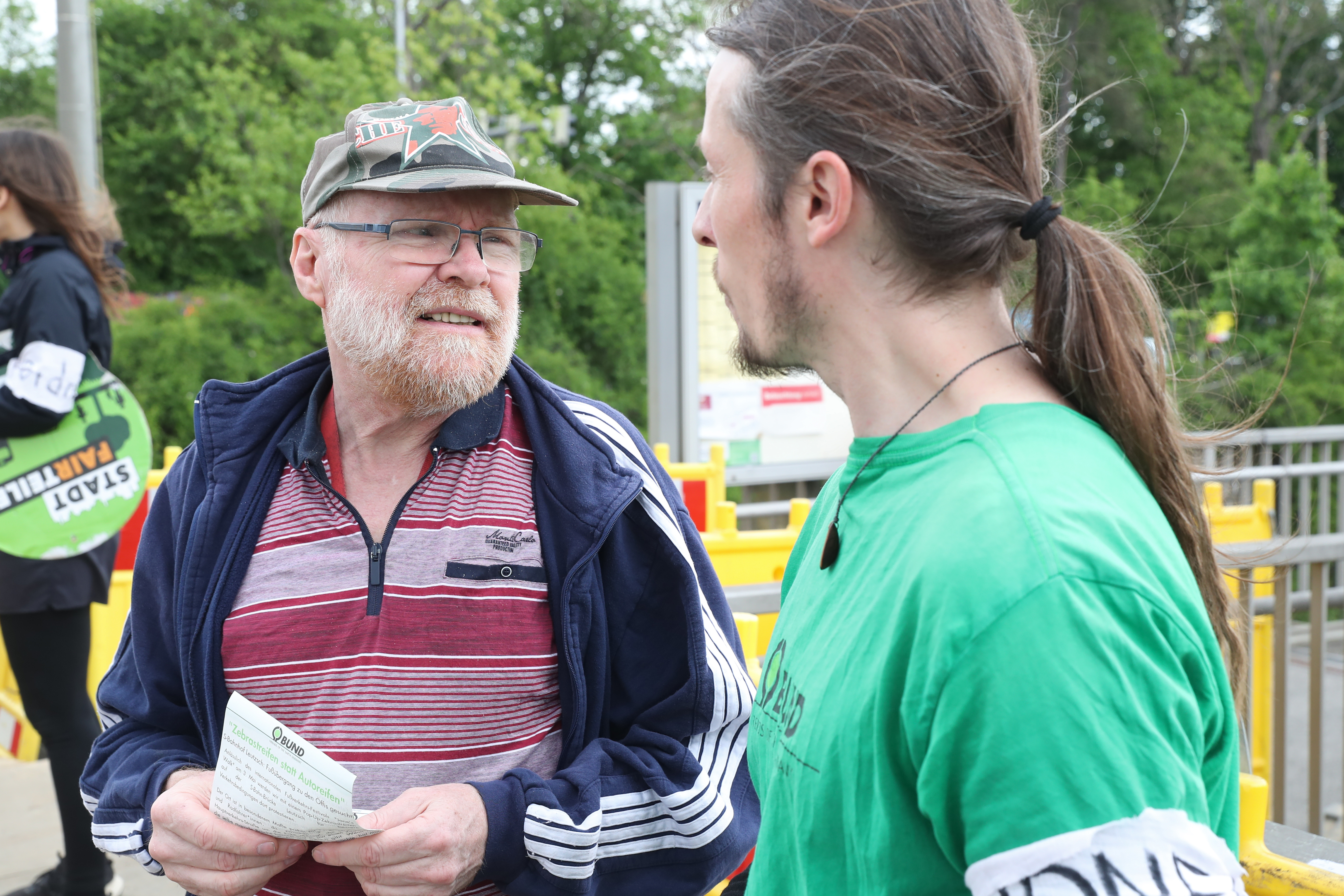 „Mit der Aktion sollte darauf aufmerksam gemacht werden, dass der Ort für Fußgänger/-innen und Radfahrer/-innen aus mehreren Gründen besonders prekär ist. Dazu zählt, dass zwischen zwei Brücken eine Hauptverkehrsstraße um die Ecke abbiegt, die Straßenbahn dieselbe marode Brücke benutzt und es nur einen Zugang zu den Gleisen von Regionalbahn und S-Bahn gibt“, stellte Külow in seiner Anfrage fest.