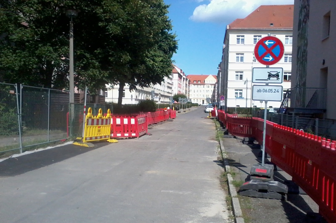 „Durch die Anordnung von herausnehmbaren Absperrpfosten in Höhe des KiTa-Zuganges wird der Durchgangsverkehr in der Stünzer Straße zwischen der Borsdorfer Straße und der Friedrich-Dittes-Straße unterbunden. Die Zufahrt der Feuerwehr wird über die Borsdorfer Straße sichergestellt.