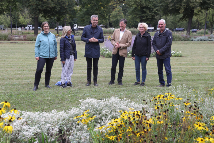 Neu sind die attraktiven Stauden in den umlaufenden Schmuckbeeten, die über die gesamte Vegetationsperiode blühen. Verschiedene Blüten- und Blattformen kombiniert mit Gräsern und Stauden mit silbrigem Laub sorgen für einen besonderen Blickfang. Auch die Schachspielfläche am Schachzentrum mit den zweifarbigen Betonplatten wurde erneuert.