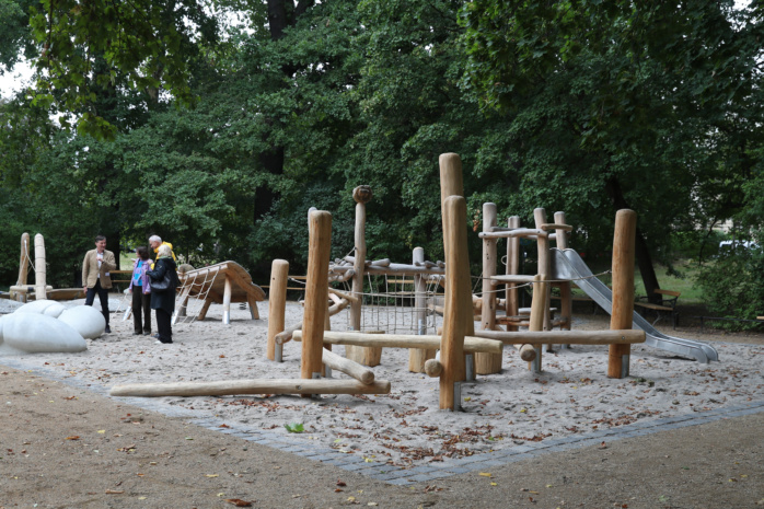 Nach rund zweieinhalb Monaten Bauzeit ist auch der vielgenutzte Spielplatz im Johannapark umgestaltet. Zum attraktiven neuen Spielangebot gehören eine Nestschaukel, die von Libellen aus Holz gehalten wird, drei große Laufkäfer sowie zwei verschiedene Schneckenarten als Betonskulpturen. Sie greifen das Thema der Förderung der biologischen Vielfalt auf. Die von der Künstlerin Elisabeth Howey geschaffenen Betonfiguren wurden aus dem Nachlass des Leipziger Bürgers Hans-Joachim Zirrgiebel finanziert.