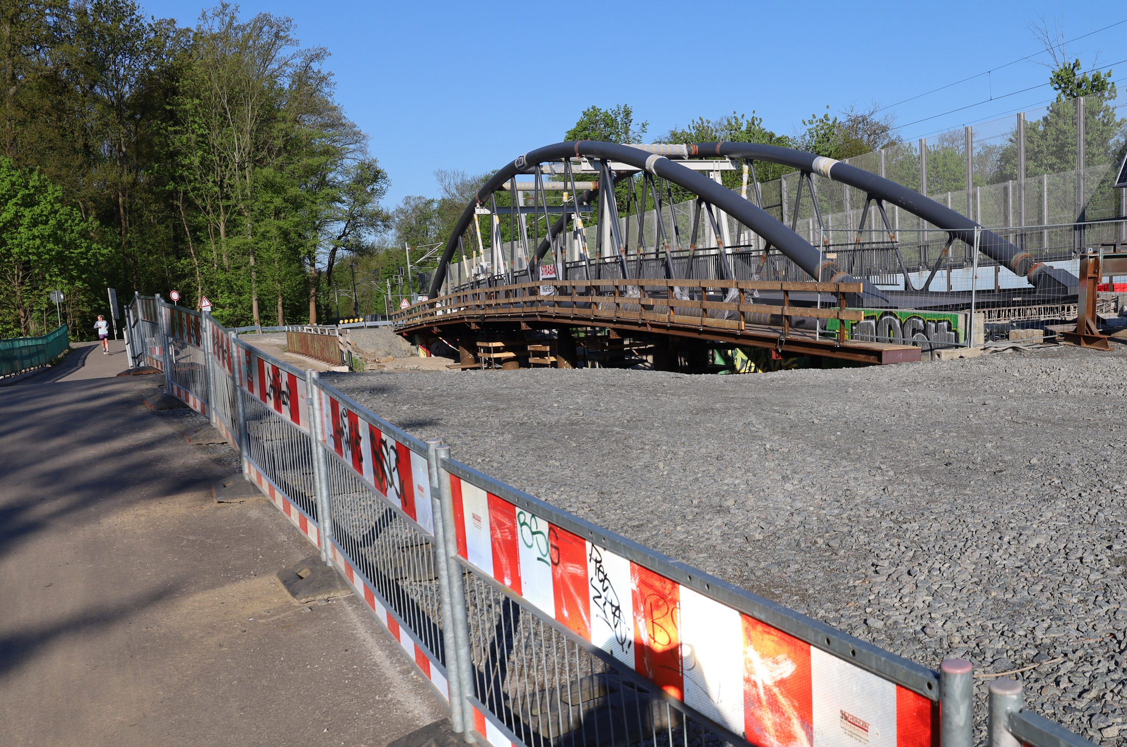 Die Stadt erklärte das so: „Da in der Fischschonzeit das Arbeiten im Gewässer nicht zulässig ist, kann der Rückbau der Behelfsbrücke sowie der Montagekonstruktion erst nach dem 30. Juni erfolgen, sodass von einem Ende des Baus zum 30. Juli auszugehen ist. Eine Nutzung der Behelfsbrücke ist bis zur Freigabe der neuen Brücke im Sommer weiterhin uneingeschränkt möglich.“