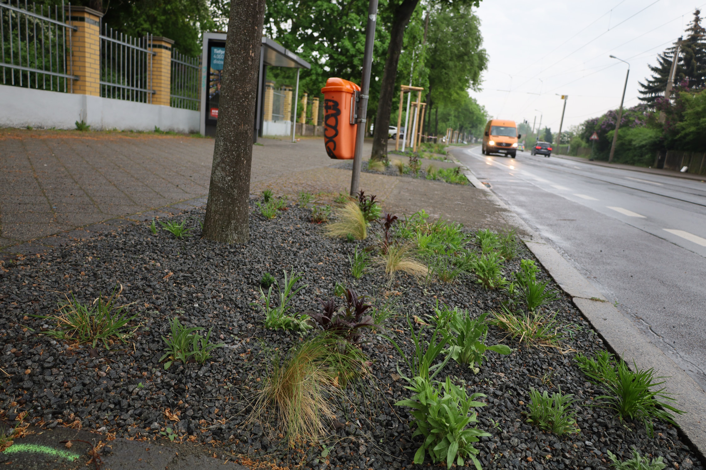 Eine Pflanzfläche direkt an der Haltestelle Ostheimstraße. Foto: Ralf Julke