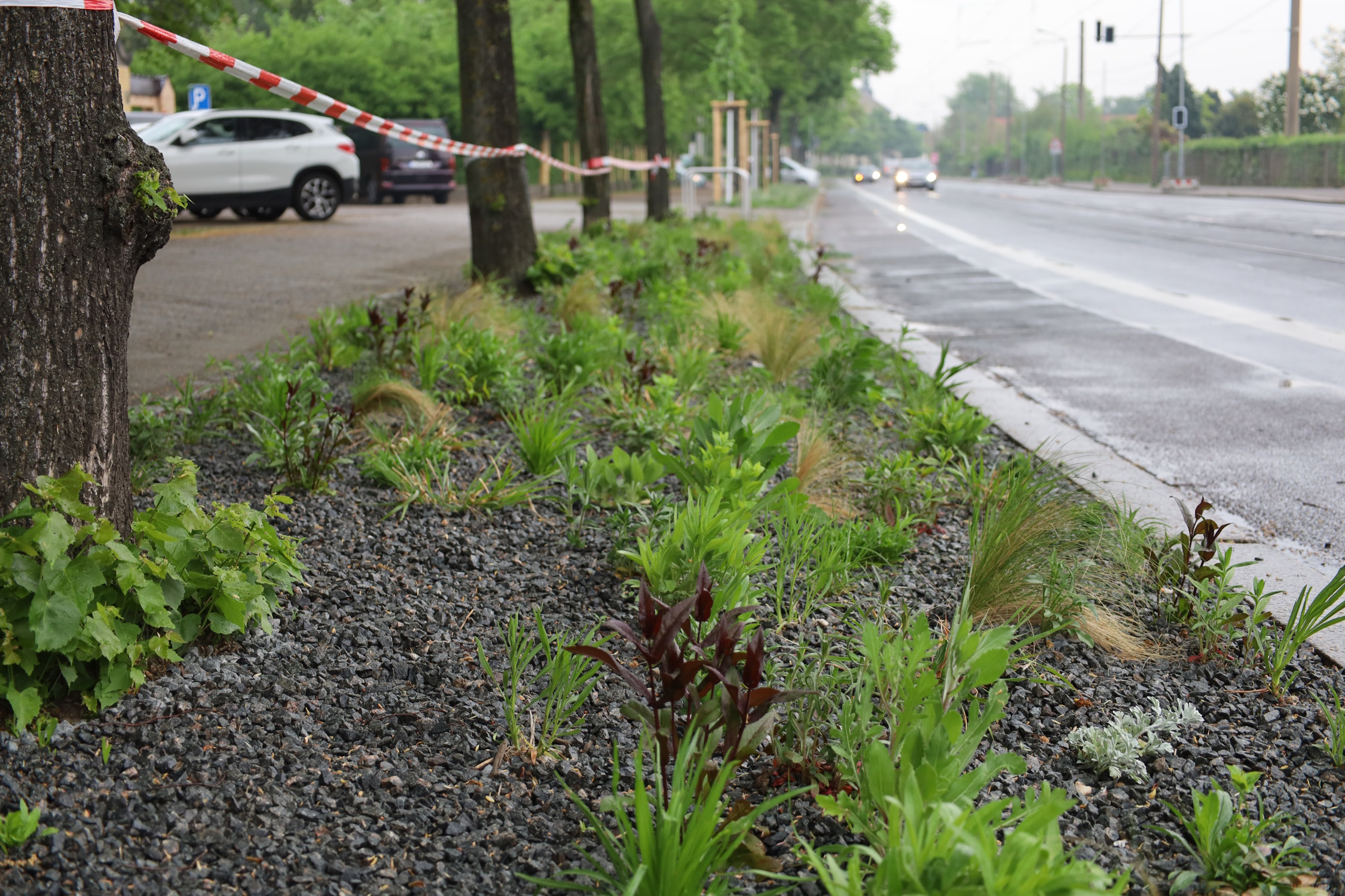 Eine Pflanzfläche an der Riesaer Straße. Foto: Ralf Julke