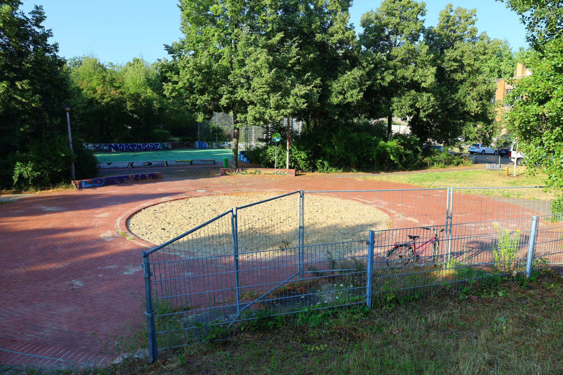 Zwischenzeitliche Reparaturen konnten die Folgen des daraus resultierenden Nutzungsdrucks nicht dauerhaft mindern, Spielbereiche mussten aus Gründen der Verkehrs- bzw. Spielplatzsicherheit bereits gesperrt werden. Hinzukommen Schäden im Untergrund als Folge von Weltkriegszerstörungen, die zu Setzungserscheinungen und damit zu erheblichen Schäden im Spielbereich geführt haben.“