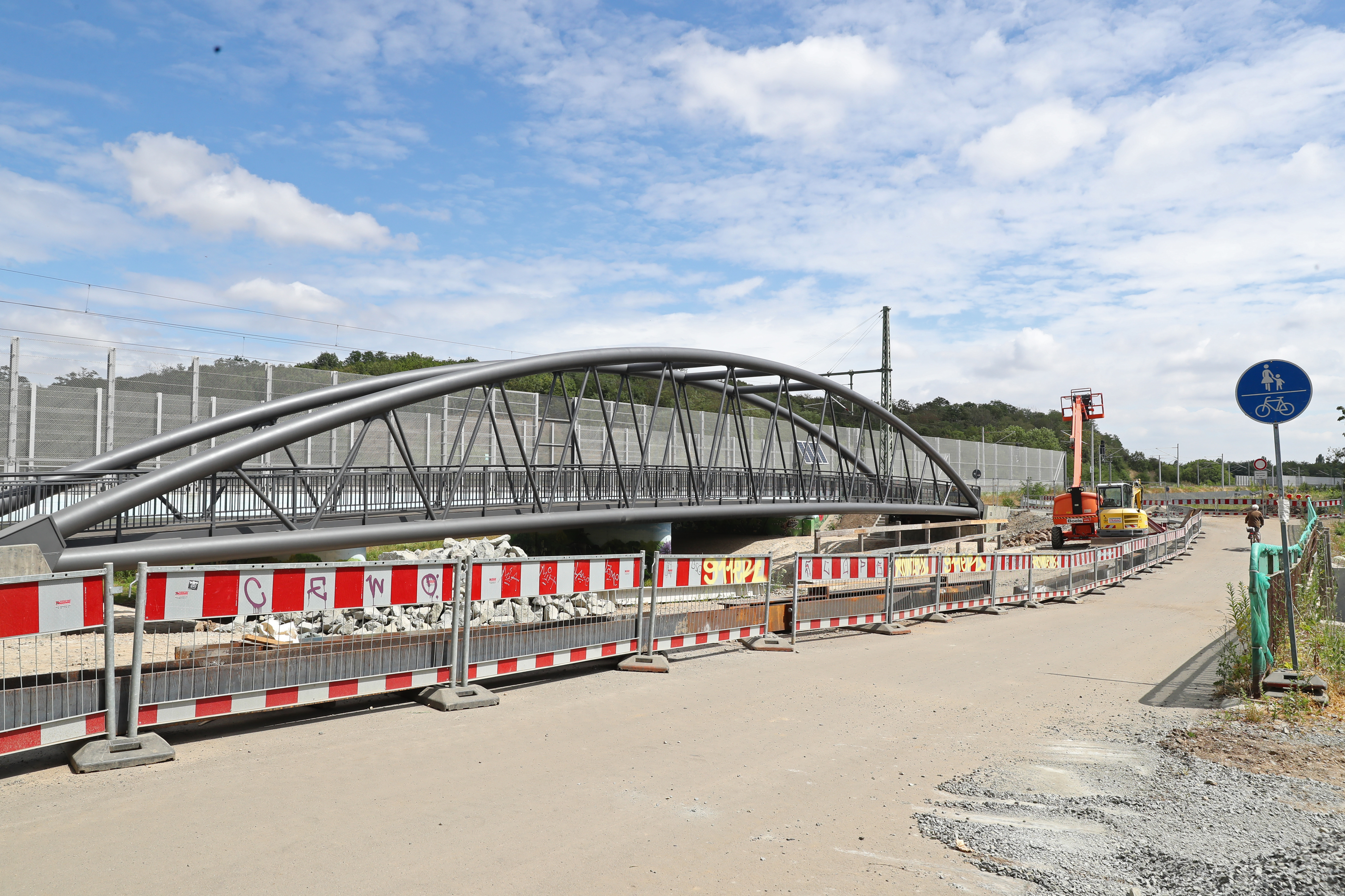 Der ursprüngliche Stahlbetonbau an dieser Stelle stammte aus dem Jahr 1962 und wies starke Schäden auf, sodass seit Oktober 2023 eine neue Querung gebaut wurde. Fußgänger und Radfahrer wurden während der Bauzeit einseitig über eine Behelfsbrücke geführt.