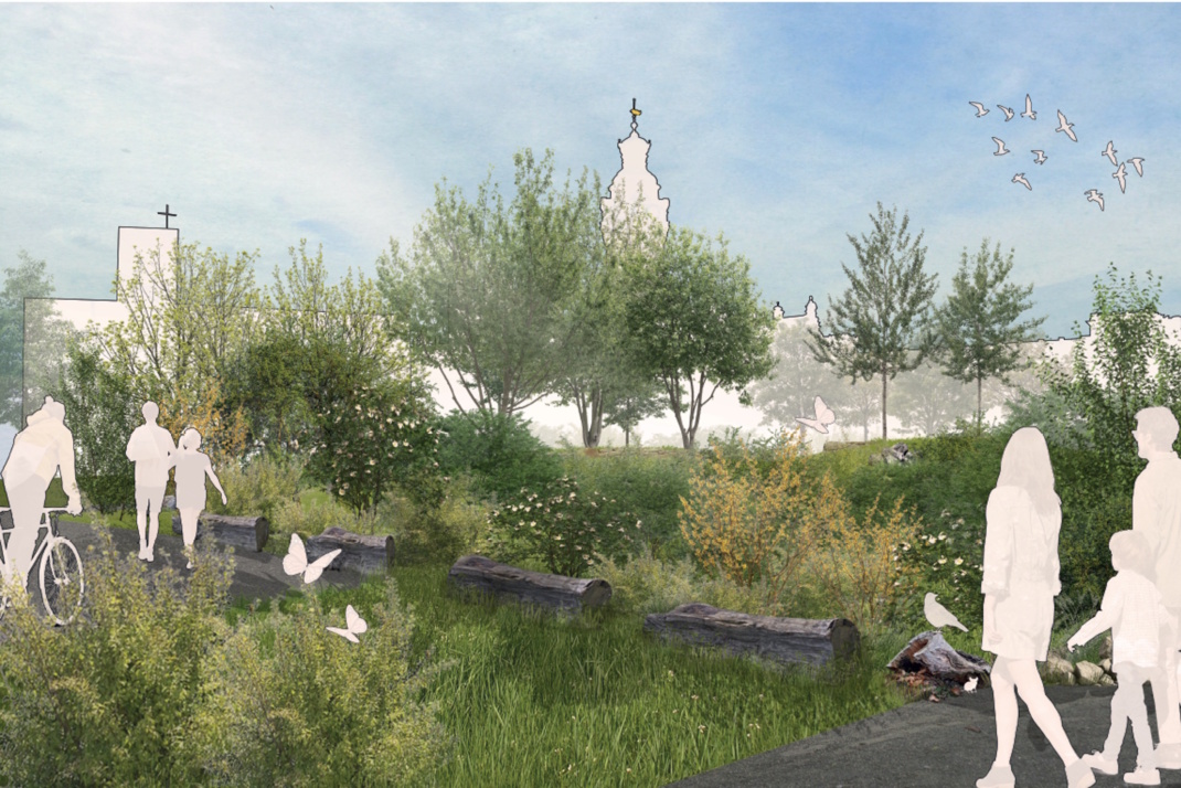 Das temporäre Grün entsteht nordwestlich des City-Tunnel-Aufgangs auf den derzeit brachliegenden Flächen und wertet diese entsprechend auf. Das Landschaftsarchitekturbüro Station C23 aus Leipzig hat die Begrünung entworfen.