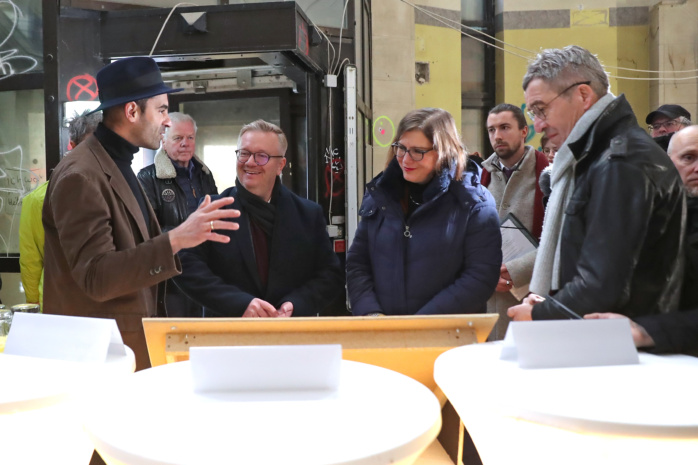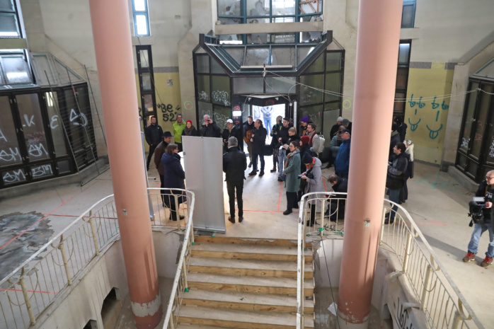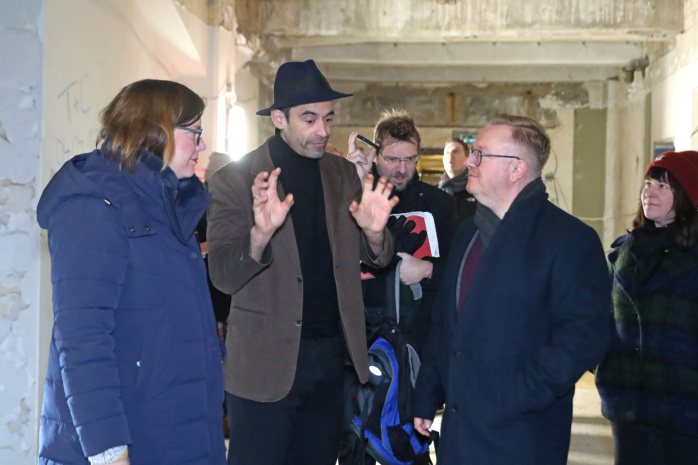 Von strahlendem Glanz ist das denkmalgeschützte Oktagon, der oberirdische Teil des früheren Bowlingtreffs, aktuell noch ein paar Baumaßnahmen entfernt. Strahlende Gesichter hingegen gab es dort bereits am 15. Januar zu sehen, zum Beispiel bei Leipzigs Kulturbürgermeisterin Dr. Skadi Jennicke (Die Linke). Unter großem Medieninteresse bekam sie aus den Händen von Staatssekretär Trillenberg den so wichtigen Fördermittelbescheid überreicht.