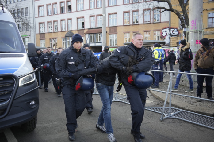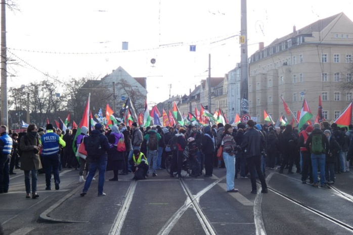 Die von der Gruppe „Lotta Antifascista“ und der vom Verfassungsschutz beobachteten „Handala“ orchestrierte Demonstration unter dem Titel „Antifa means: Free Palestine“ wartet weiterhin darauf, sich in Bewegung setzen zu dürfen. Statt weiter nach Connewitz hinein, wird es für sie dann genau in die entgegengesetzte Richtung, in die Innenstadt, gehen. Die LZ setzt ihren Liveticker hier nun mit dem 3. Teil fort.