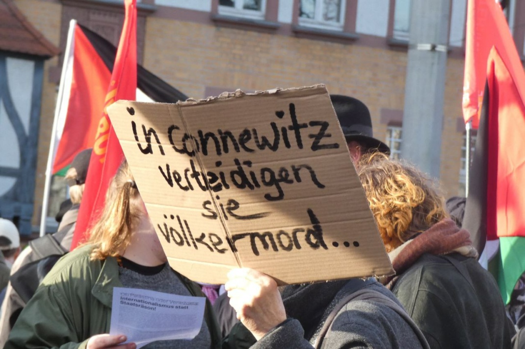 Die „Freien Sachsen“ wollten Popcorn verteilen und auch viele andere Rechte und Boulevard-Medien haben heute wohl darauf gehofft, Bilder sich prügelnder Linker zu sehen. Das wird voraussichtlich nicht passieren, da sich die Palästina-Demo jetzt aus Connewitz rausbewegt. Entlang der Route dürfte es deutlich weniger Gegenprotest geben als am Kreuz.