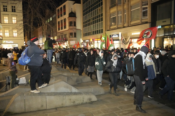 Nach längerer Verzögerung war die Demonstration „Antifa means: Free Palestine“ gegen 15 Uhr gestartet. Zuvor hatte es Probleme gegeben, die erforderliche Anzahl an geeigneten Ordnern zu finden. Zudem gab es Zugriffe der Polizei gegen Personen, die gegen das Vermummungsverbot verstießen. Die nach vorläufiger Schätzung 1.500 bis 2.000 Teilnehmenden bewegen sich aktuell Richtung Innenstadt, und die LZ setzt ihren Ticker mit diesem 5. Teil fort.
