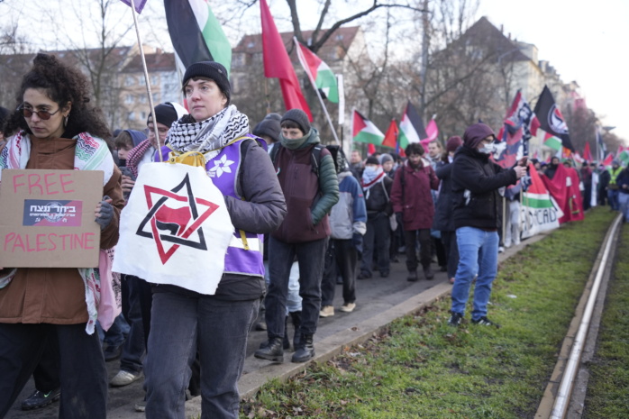 Kritisiert wird auf der Zwischenkundgebung des propalästinensischen Lagers in einem Redebeitrag