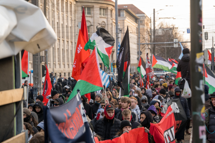 Hier können Sie den letzten Teil unseres Tickers nachlesen. Die Demo unter dem Motto „Antifa means: Free Palestine“ wird in diesen Minuten am Augustusplatz beendet. Nach einem eher entspannten Start am Connewitzer Kreuz während des Vormittags hatte sich die Stimmung im Laufe der Stunden aufgeheizt.