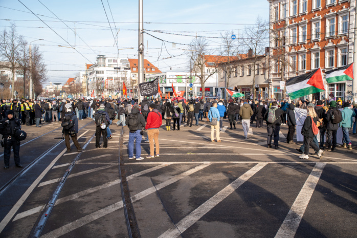 Es kam zu Wortgefechten mit dem Gegenprotest am Rand der Strecke auf der Karl-Liebknecht-Straße in Richtung City, Zugriffen der Polizei auf Teilnehmer des propalästinensischen Aufzugs wegen Straftatverdachts, israelfeindlichen Parolen und offenbar auch tätlichen Angriffen. So wurde ein Team des MDR nach Angaben des Senders attackiert.