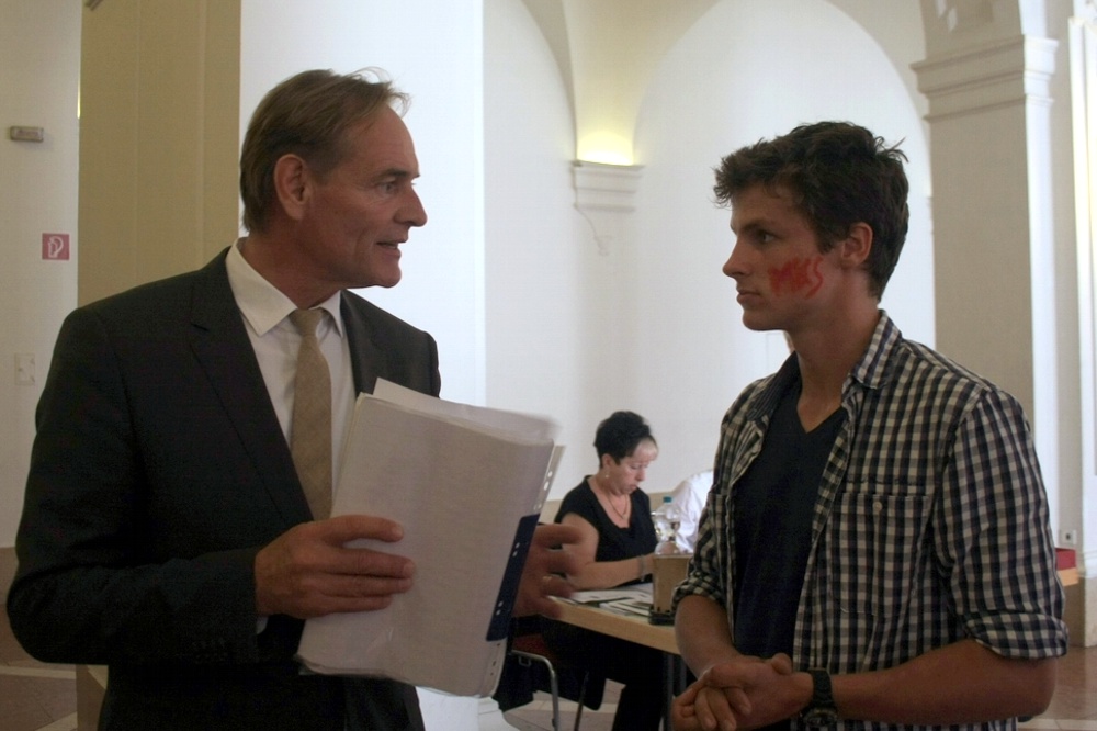 Ein Schüler der MKS erwischte den OBM noch vor dem Ratssaal, wo einige Schüler ausgeharrt hatten. Foto: L-IZ.de