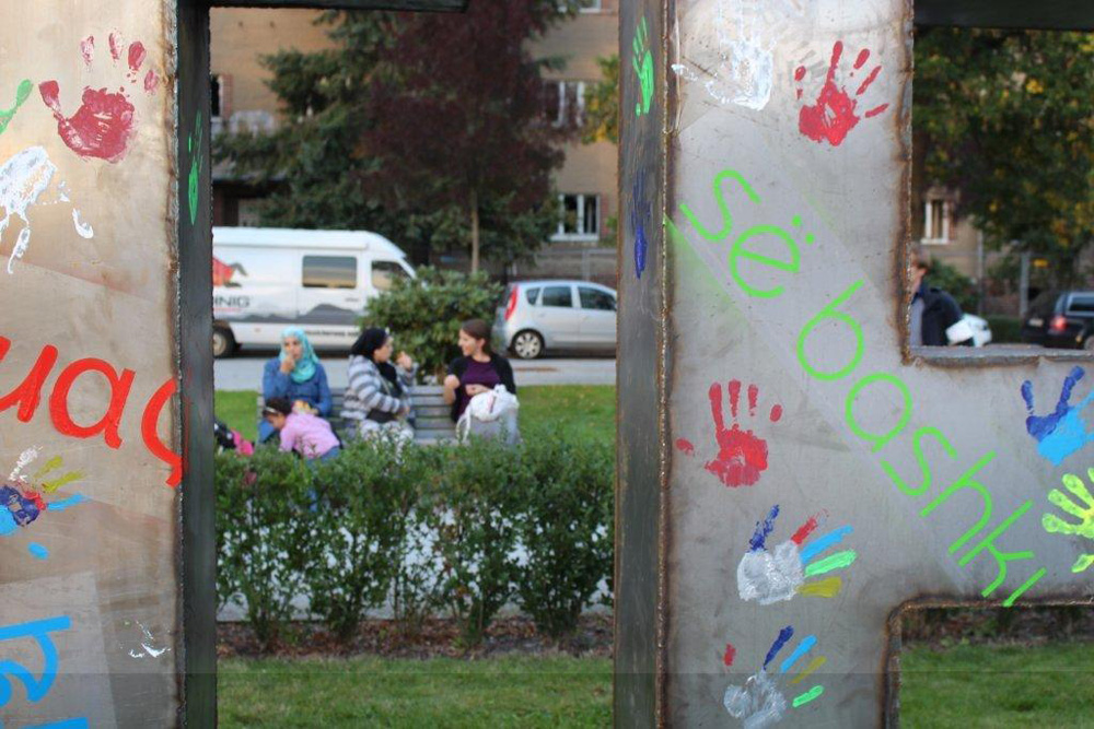 In den vergangenen Wochen hatte das Projekt eine beeindruckende Eigendynamik entwickelt. So stellte der Jugendbeirat zusammen mit der Werbeagentur Kuntzsch Schablonen her, mit denen MITEINANDER in 18 verschiedenen Sprachen auf die Skulptur gesprüht wurde.