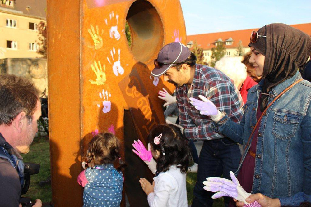Geschaffen hat die Wortskulptur der deutsch-türkische Metallkünstler Hüseyin Arda aus Berlin, der regelmäßig in Dorfhain bei Freital arbeitet: „Wir wollen mit unserer Aktion eine Wertedebatte anstoßen, Stoff zum Diskutieren liefern, für Toleranz werben. Jeder ist Ausländer, fast überall. Wir wollen wieder in eine respektvolle Kommunikation finden, fernab von abwertenden Äußerungen und Beschimpfungen. Die politischen und gesellschaftlichen Herausforderungen der weltweiten Flüchtlingsthematik lassen sich nur gemeinsam lösen.“